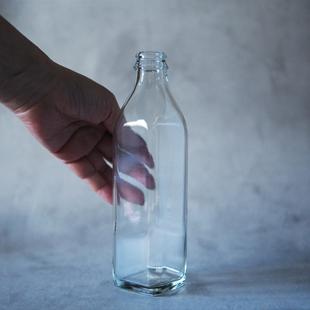 スリムな瓶です。ソースやドレッシングに適した打栓口。