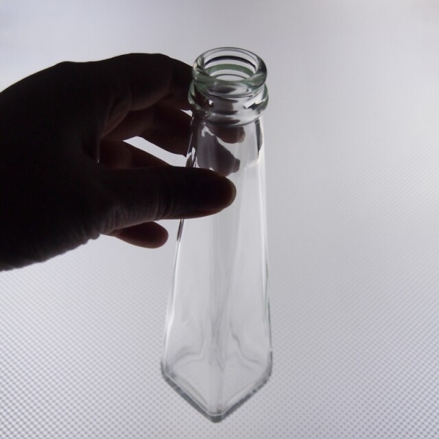 スリムな瓶です。ソースやドレッシングに適した打栓口。